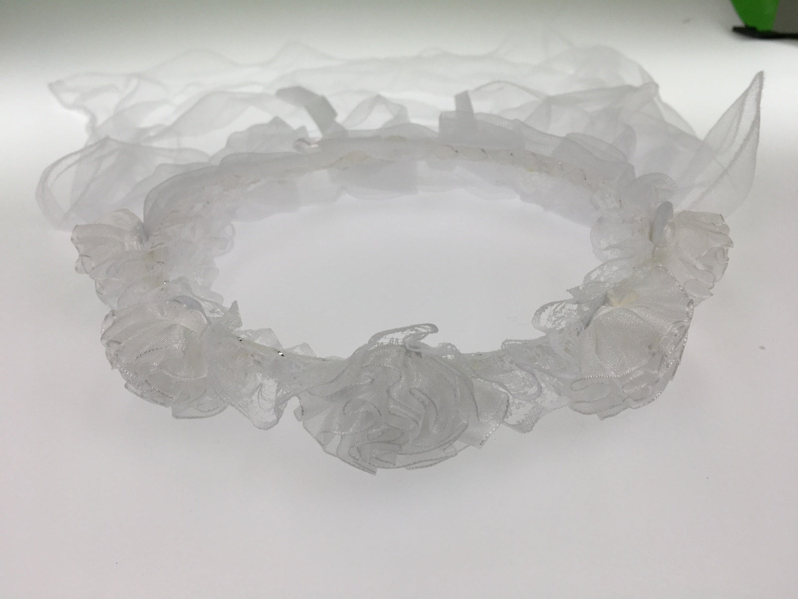 White colour with flowers sewn onto the headband.
