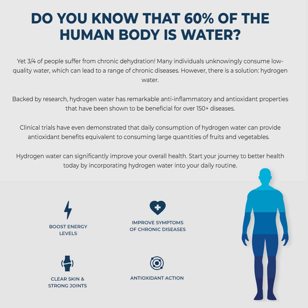 Produces the highest industry levels ofmolecular Hydrogen concentrates