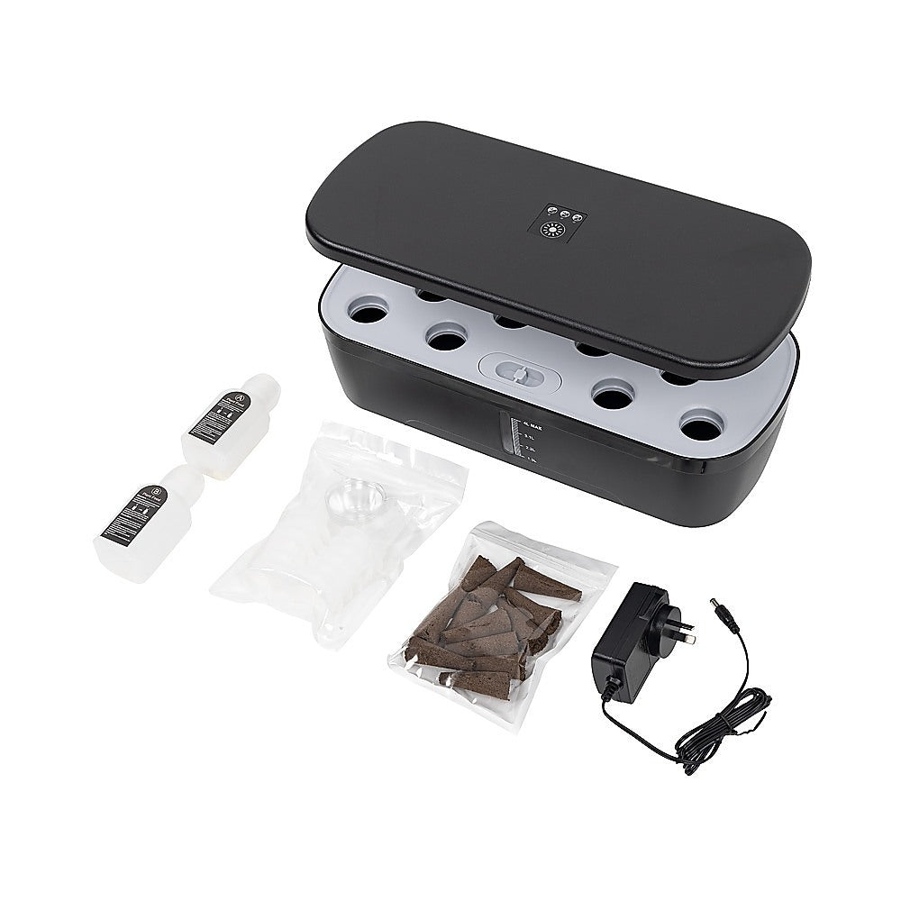 - Step 4: Connect the adapter and press the power button. (Press and hold the O button for 5 seconds to start your hydroponic system.)
