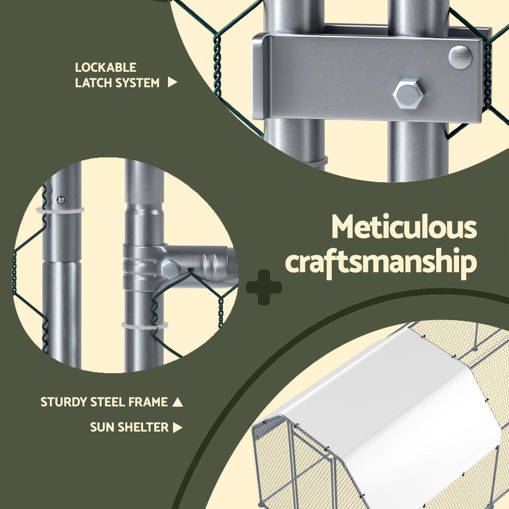 Give your beloved pets a safe and comfortable home to sleep, rest, and relax. The i.Pet's chicken coop has a spacious area to move around freely, which prevents them from feeling trapped or restricted. Not just for chickens, this pet cage makes a great home for geese and ducks too. It's constructed from a galvanised steel material for durable and long-lasting use. And wire sidewalls allow proper airflow and good ventilation. Nonetheless, the weather-resistant roof is perfect for keeping your pets safe during harsh weather conditions.