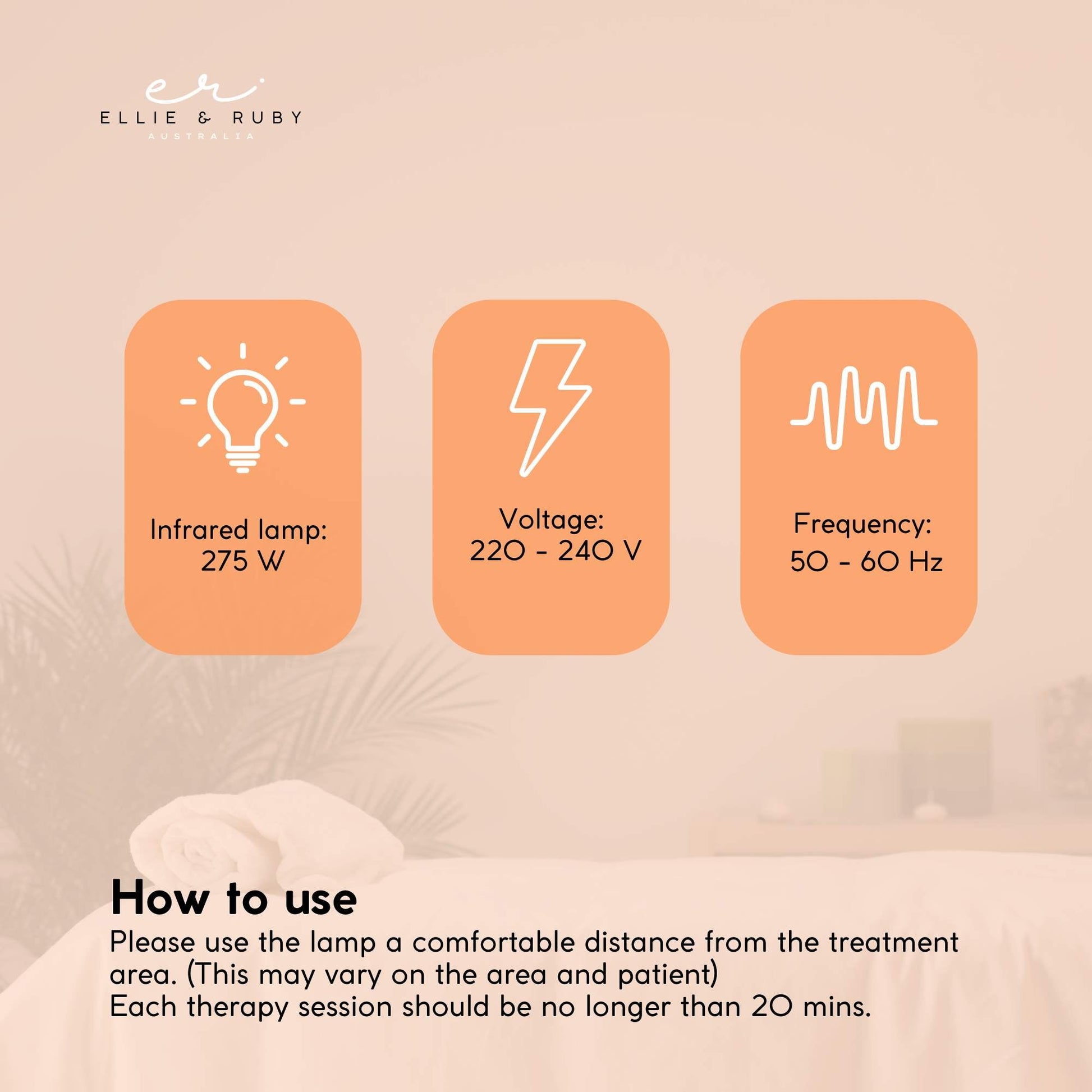 This infrared heating lamp with 275W bulb for thermotherapy treatments. The heat of this infrared lamp is very comfortable and penetrates the skin deeply.