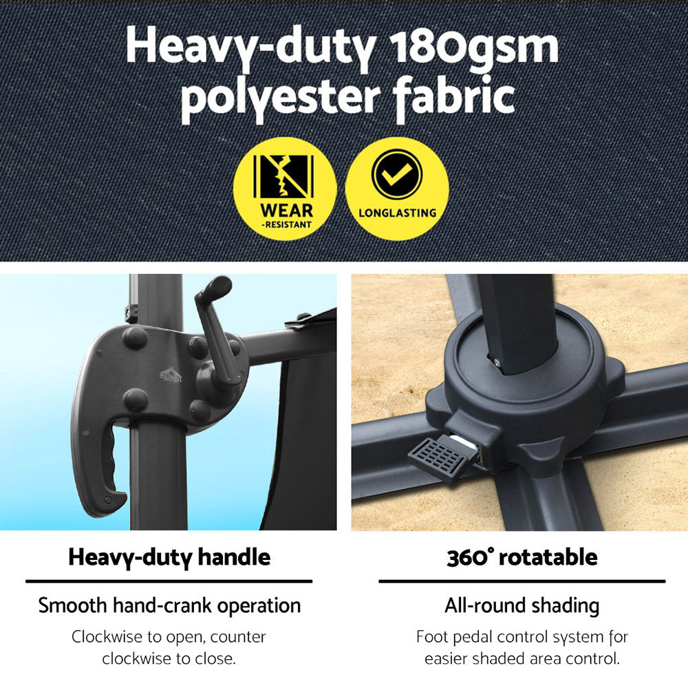3m Outdoor Umbrella Cantilever 360 Degree Tilt Beach Roma Charcoal