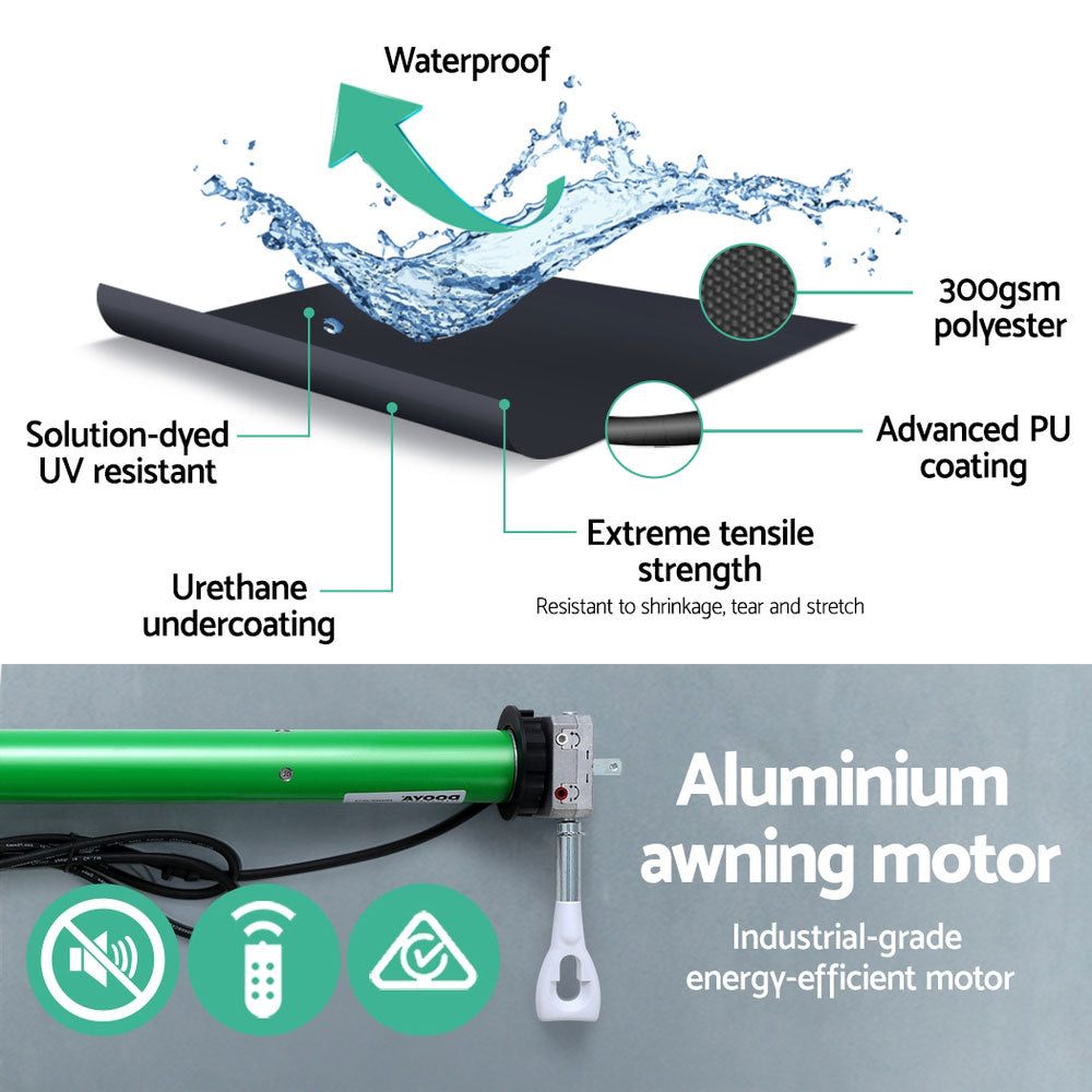 Retractable Folding Arm Awning Motorised Sunshade 2.5Mx2M Grey