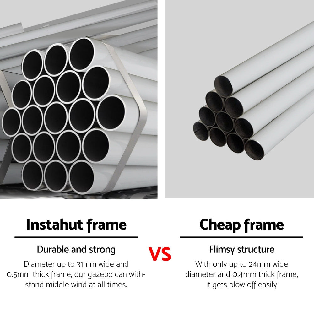 It's your big day and everything needs to be perfect, including the comfort of your guests. That's where Instahut comes to the rescue. The ideal solution for instant cover outdoors, our 300cm by 900cm wedding gazebo will ensure your guests are protected come rain or shine. Made from strong powder-coated metal tubing and covered with a 100PE UV and water-resistant canopy, the gazebo is built to last in a variety of weather conditions. With its quick and convenient Velcro attachments, you can set the gazebo up in minutes. The bonus carry bag allows you to store it away in your car boot, van, trailer, garage or shed until just the right moment. It also comes with bonus ropes and pegs so you can rest assured your canopy will last throughout the event. It's not just suitable for weddings the gazebo is suitable for markets, sporting events, camping, yard sales, school events and trade shows. Enjoy the outdoors to the fullest with an Instahut Wedding Gazebo.