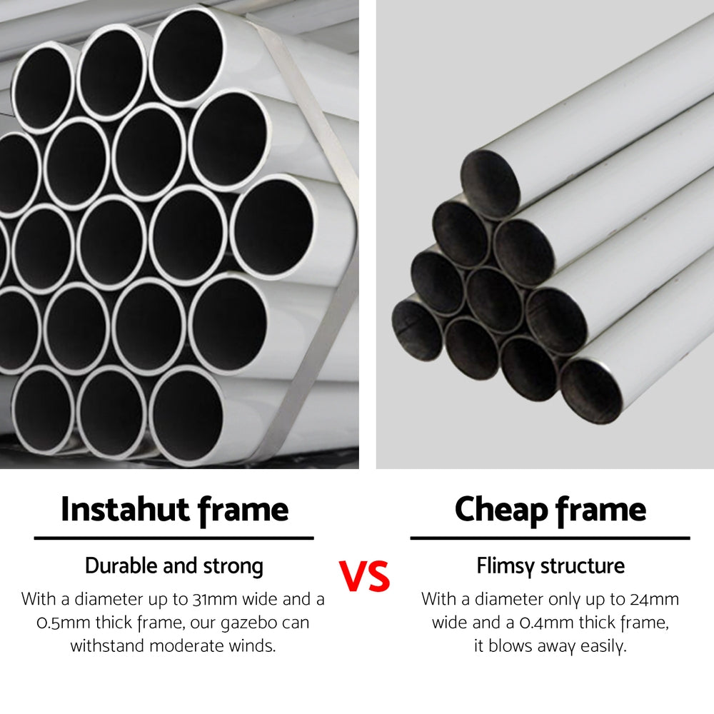 It's your big day and everything needs to be perfect, including the comfort of your guests. That's where Instahut comes to the rescue. The ideal solution for instant cover outdoors, our 300cm by 900cm wedding gazebo will ensure your guests are protected come rain or shine. Made from strong powder-coated metal tubing and covered with a 100PE UV and water-resistant canopy, the gazebo is built to last in a variety of weather conditions. With its quick and convenient Velcro attachments, you can set the gazebo up in minutes. The bonus carry bag allows you to store it away in your car boot, van, trailer, garage or shed until just the right moment. It also comes with bonus ropes and pegs so you can rest assured your canopy will last throughout the event. It's not just suitable for weddings 閳 the gazebo is suitable for markets, sporting events, camping, yard sales, school events and trade shows. Enjoy the outdoors to the fullest with an Instahut Wedding Gazebo.
