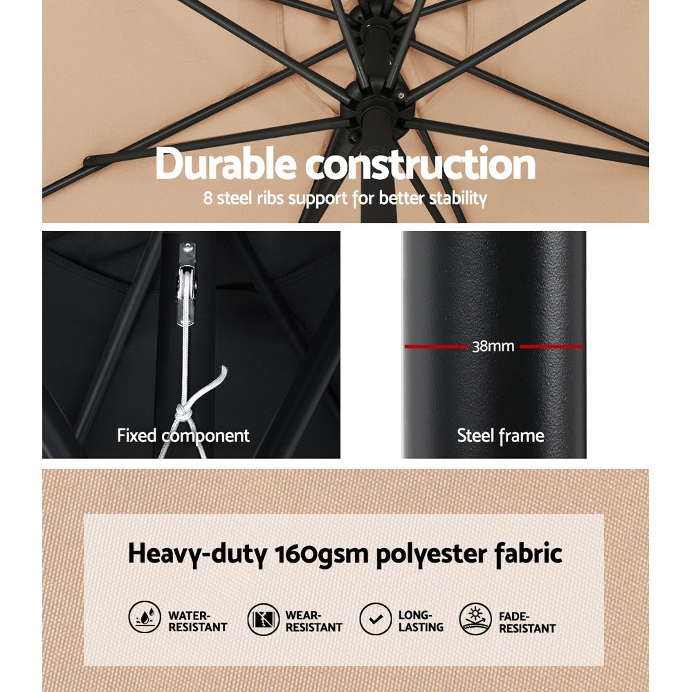 3m Outdoor Umbrella w/Base Pole Tilt Beach Garden Patio Beige