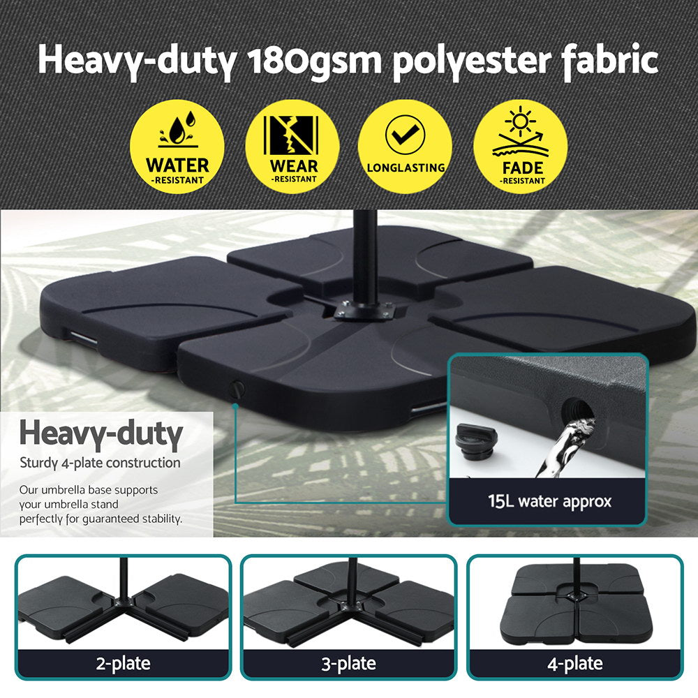 Outdoor Umbrella 3M Cantilever Beach LED Base Garden Sun Patio Charcoal