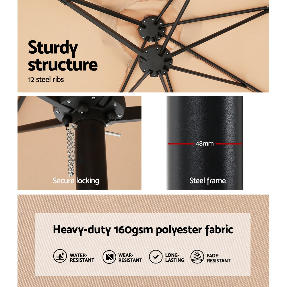 4.57m Outdoor Umbrella w/Base Stand Beach Pole Garden Tilt Beige