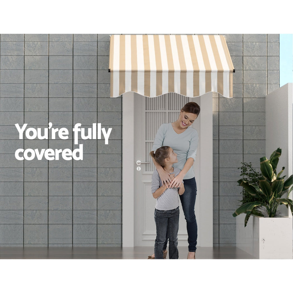 Instahut Window Door Awning 1mx1m Beige White Polyester Fabric Aluminum Frame