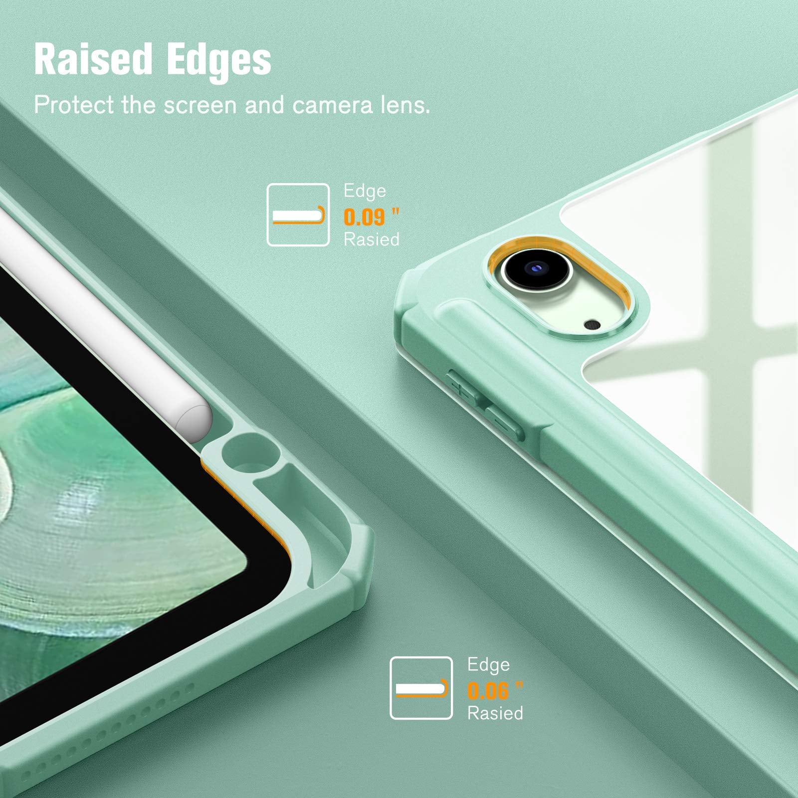 iPad 10th Case 10.9 Inch 2022 with Pencil Holder, Smart iPad Clear Case with Soft TPU Auto Wake Sleep Green