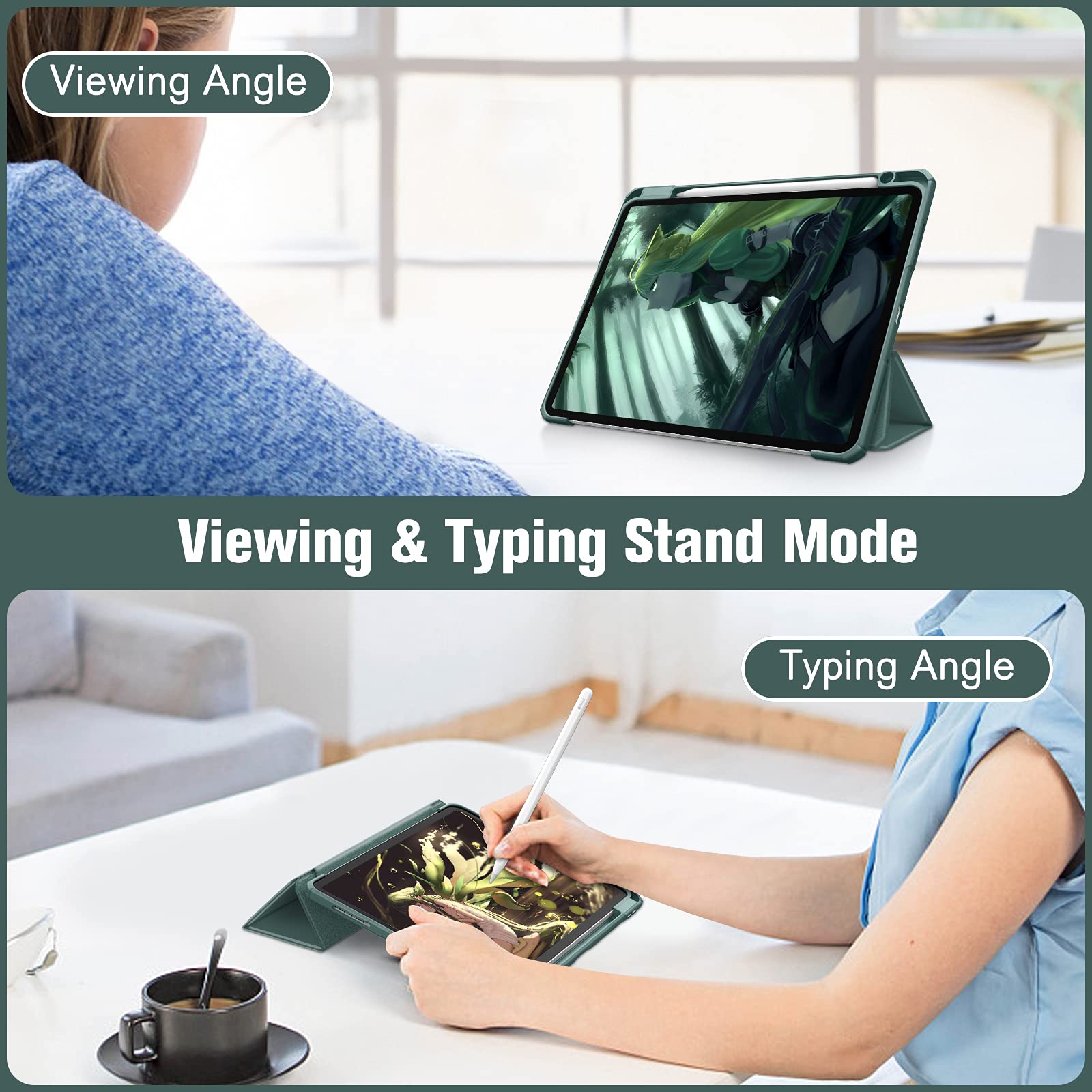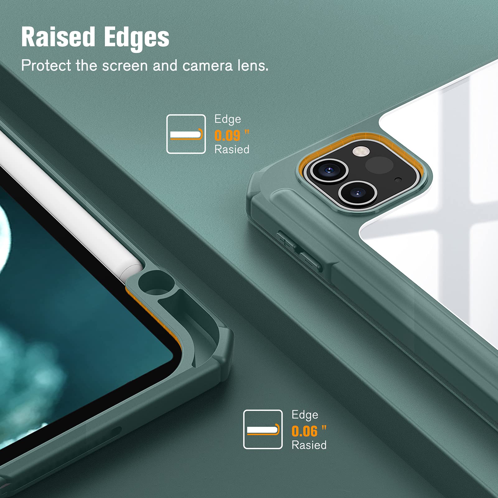 iPad Pro 11 Inch 2020-2022 Soft Tpu Smart Premium Case Auto Sleep Wake Stand Clear Cover Pencil holder Dark Green