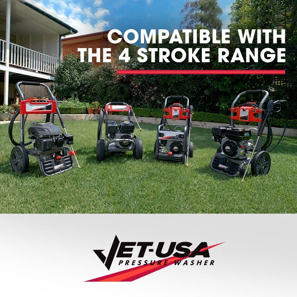 If power, reliability and serious results are what you’re after, give your Jet-USA Petrol Pressure Washer a boost with the Ultimate Edition Pressure Cleaner Accessory Pack.
