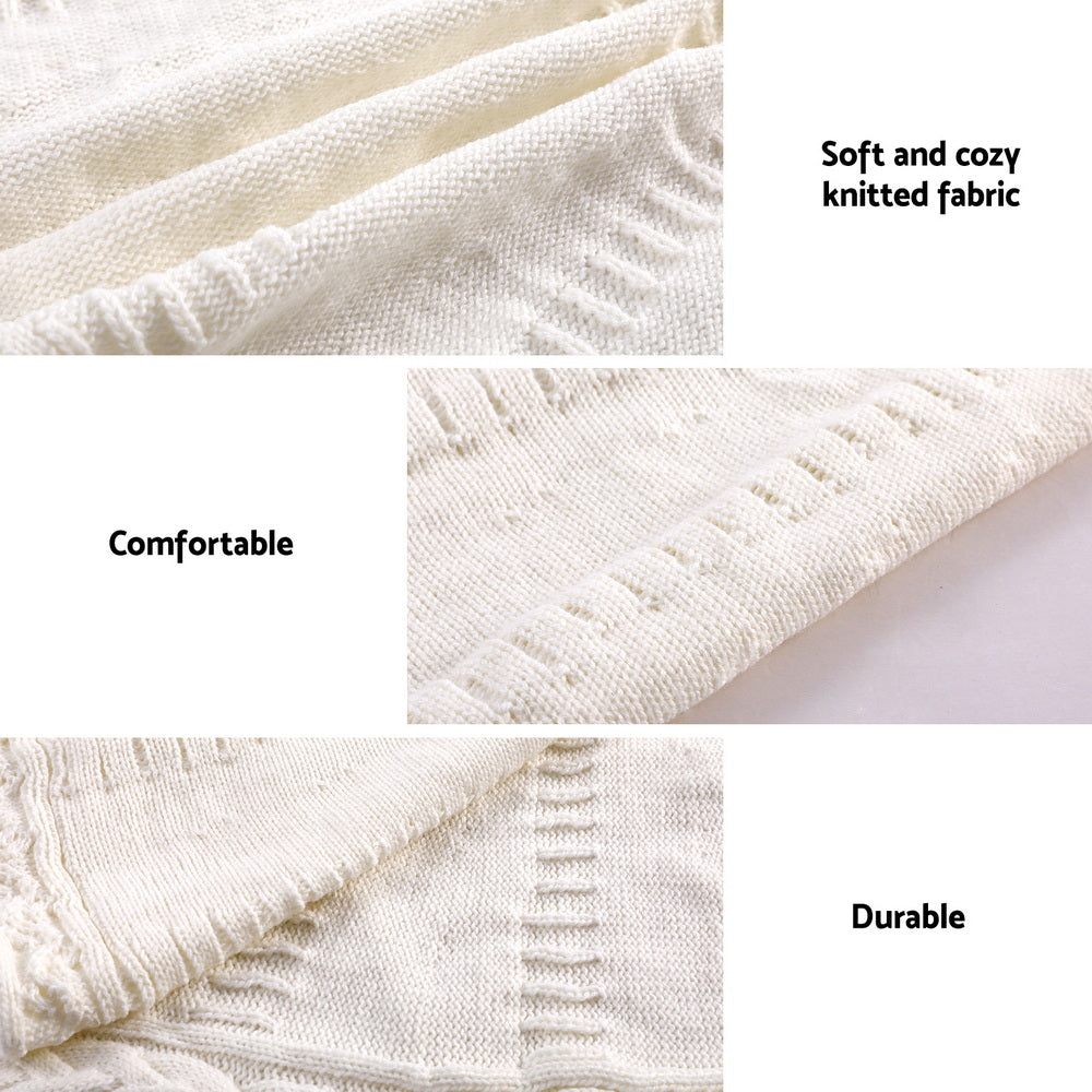 Christmas Tree Skirt 90cm Knitted Fabric Xmas Ornament Decor Beige