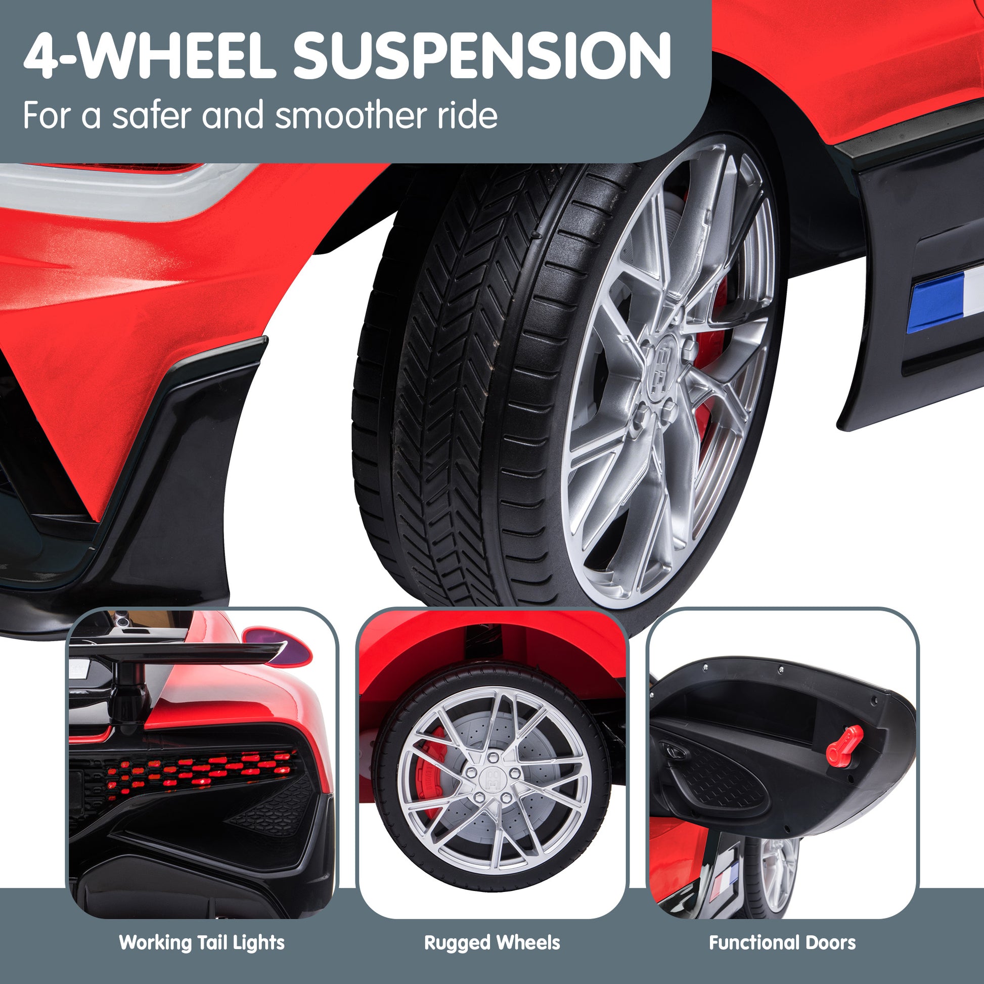 Embark on luxurious joyrides with the Bugatti Divo Electric Ride On Car! Licensed by Bugatti, this miniature marvel boasts a range of features. Its 4-wheel suspension system ensures a smooth, steady ride for all your childs adventures.