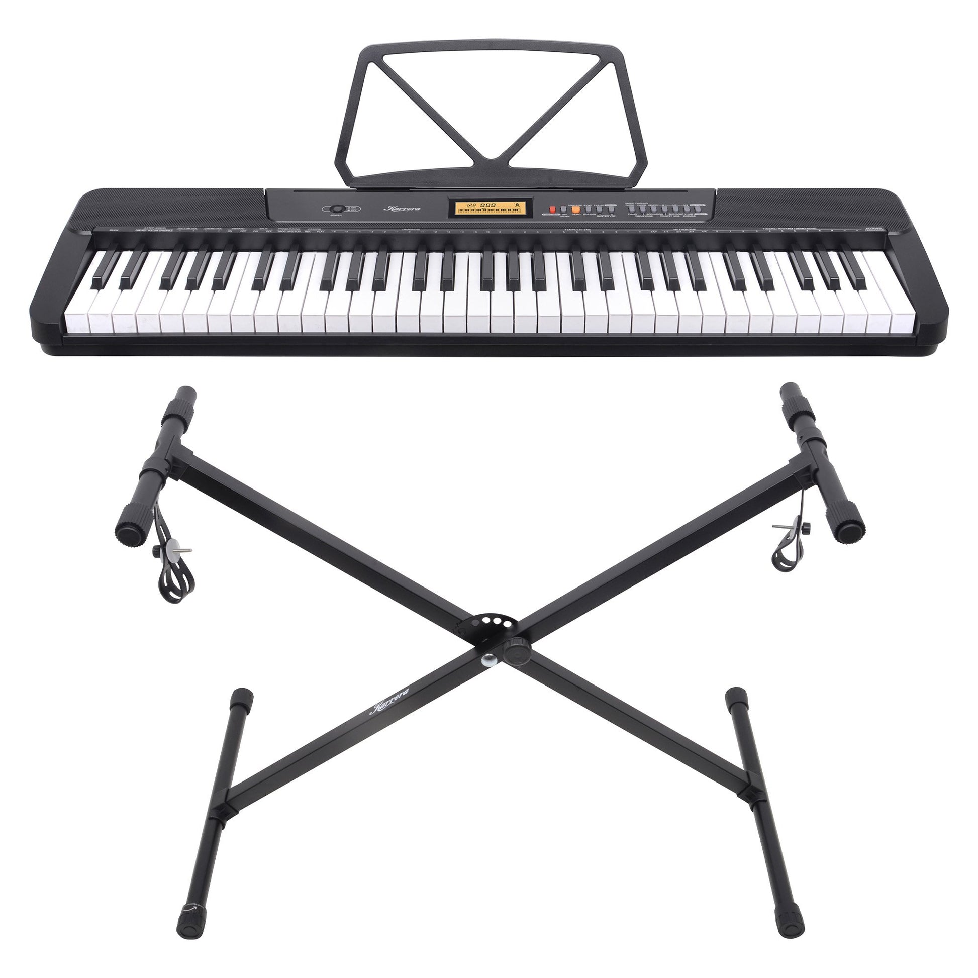 - Music sheet holder and adjustable stand included