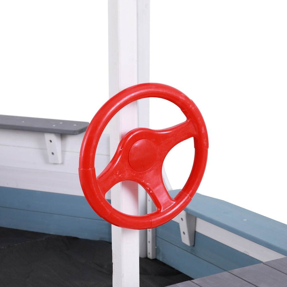 Kids Sandpit Wooden Box Boat Canopy Flag Outdoor Toys Children Blue