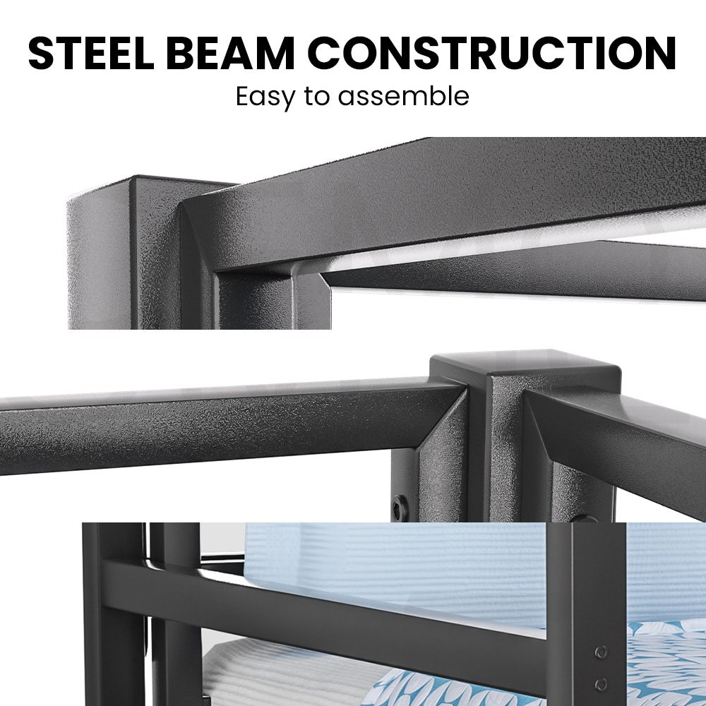 Each bed holds up to 120kg. The fixed ladder stays put. No wobbles. No slips. Just confidence every time you climb.