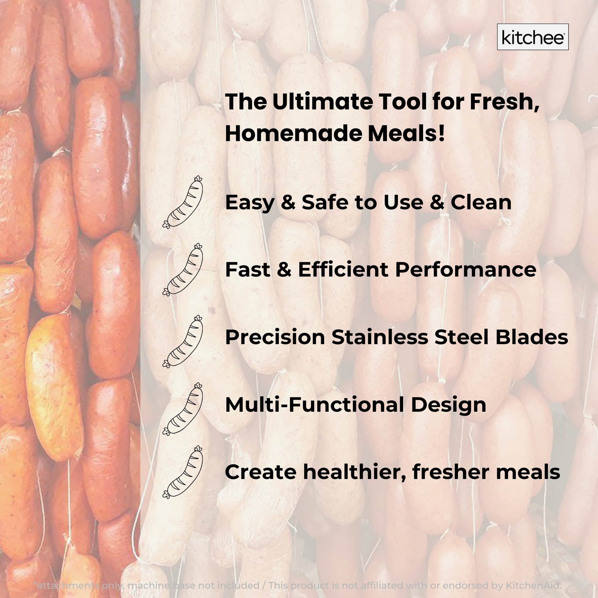 Kitchee Meat Food Grinder Sausage Attachment - Compatible with KitchenAid Mixers