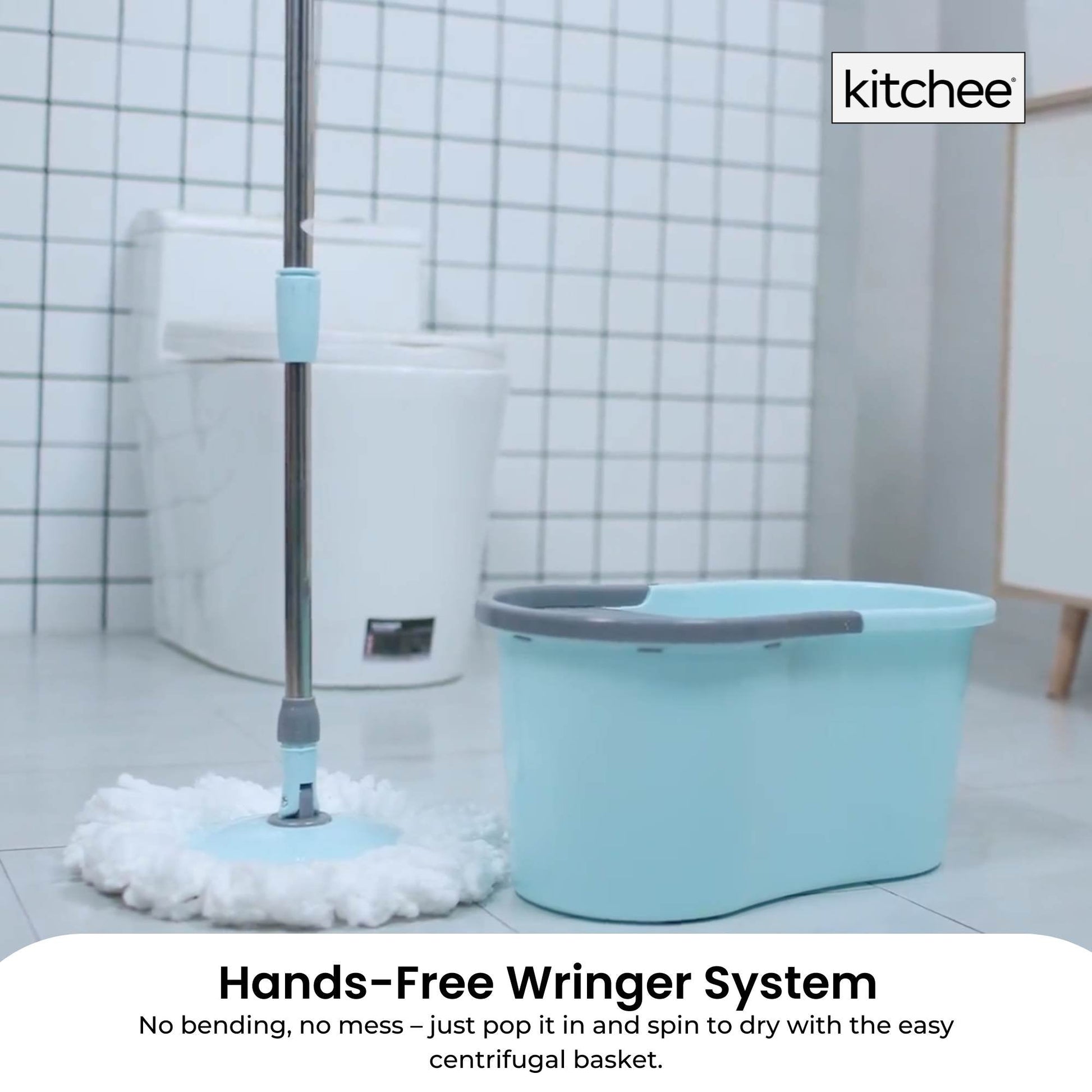 Kitchee Spin Mop & Bucket Set – Microfibre Pad, Telescopic Handle, 10L Capacity