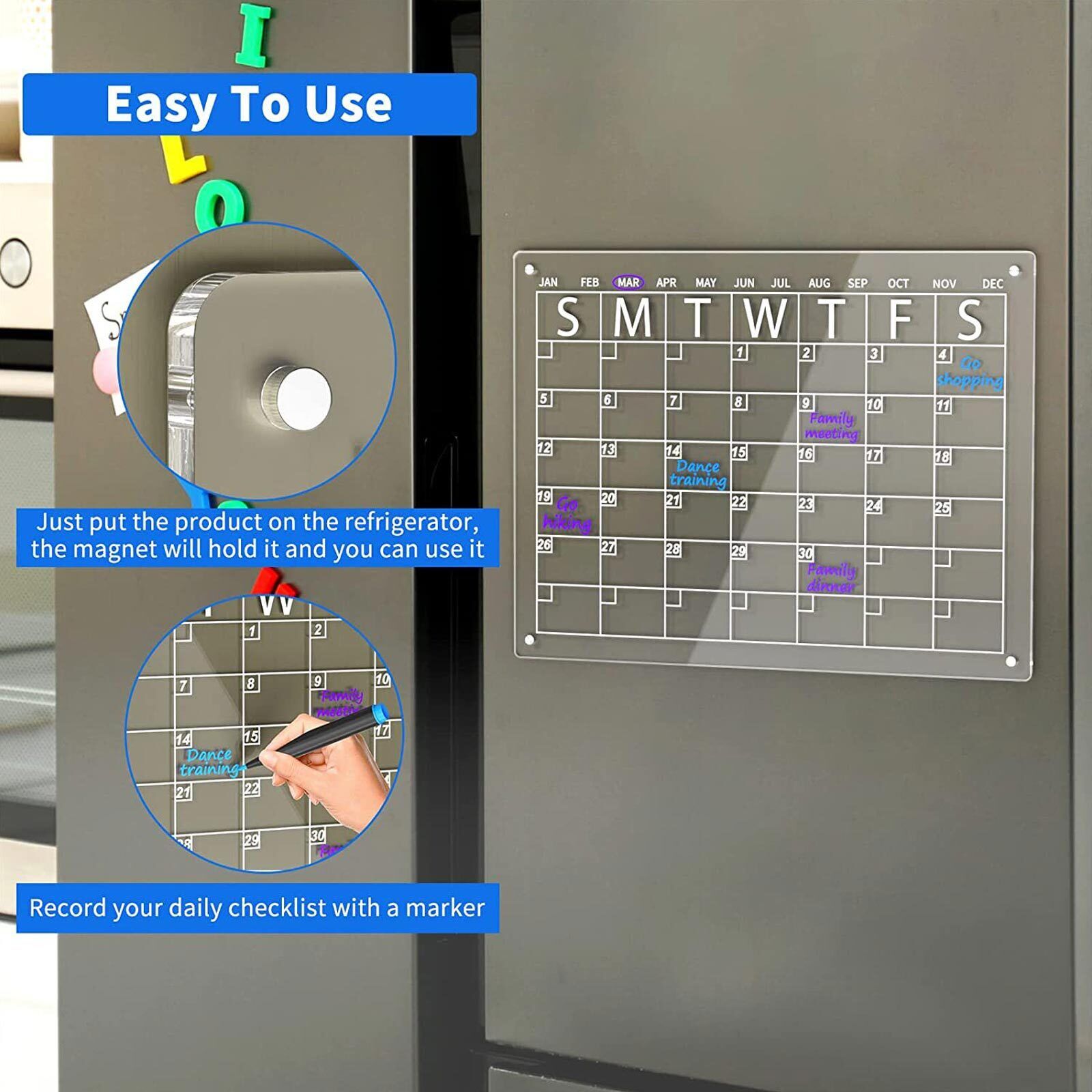 Easy to Use: Designed for you to plan your daily life, the stylish transparent acrylic magnetic calendar panel allows you to write more, space saving.