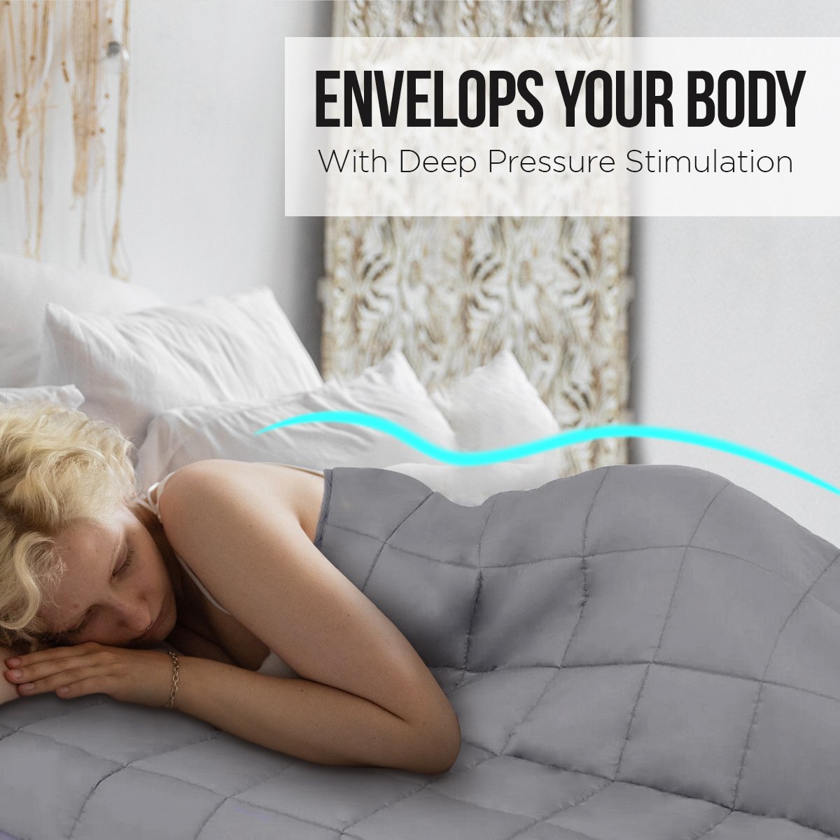 Weighted blankets may help to improve mood and sleep by using deep pressure stimulation. The gentle pressure of weight across the body may provide relaxation, comfort, and ease anxiety and stress so you can wake up feeling well-rested.