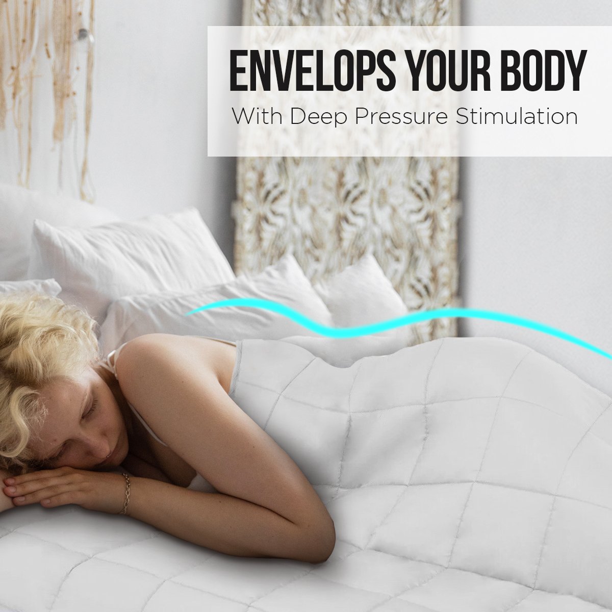 Weighted blankets may help to improve mood and sleep by using deep pressure stimulation. The gentle pressure of weight across the body may provide relaxation, comfort, and ease anxiety and stress so you can wake up feeling well-rested.