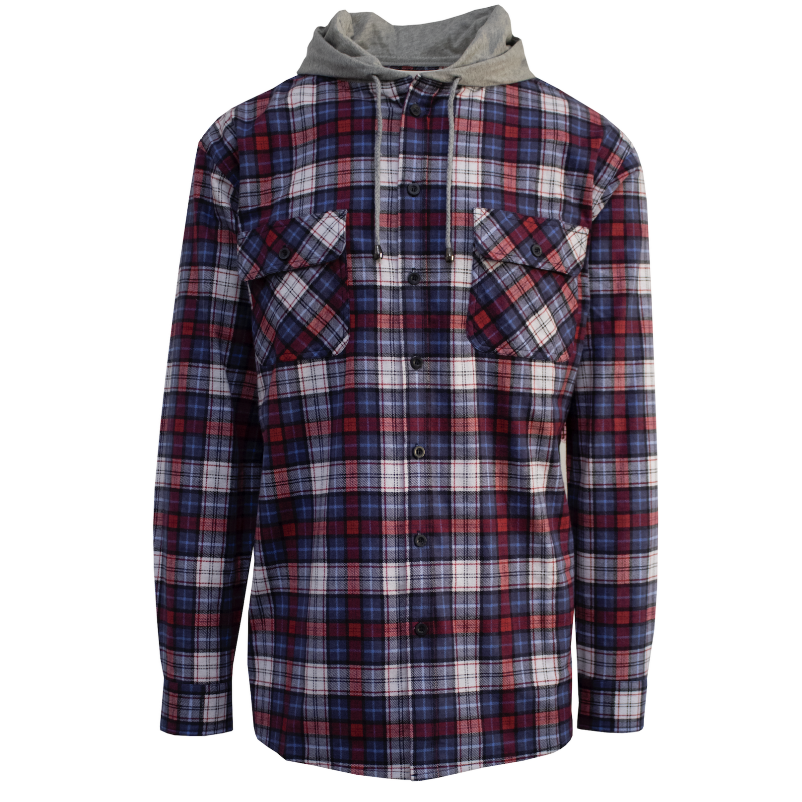 Men's Cotton Flannelette Shirt w Jersey Hood Long Sleeve Flannel