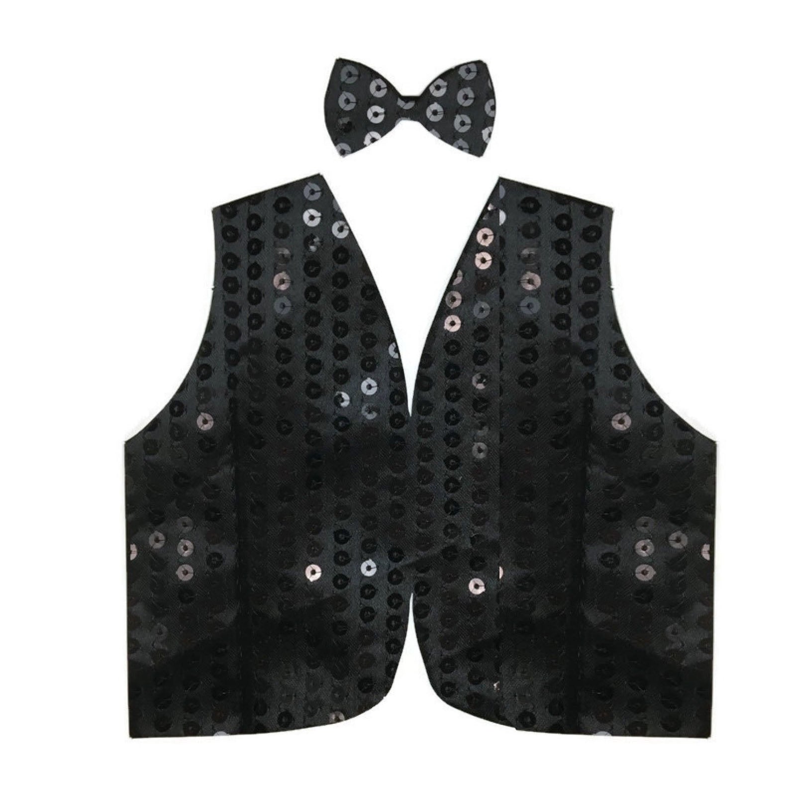 Mens SEQUIN VEST Dance Costume Party Coat Disco Accessory Sparkle Waistcoat - Black