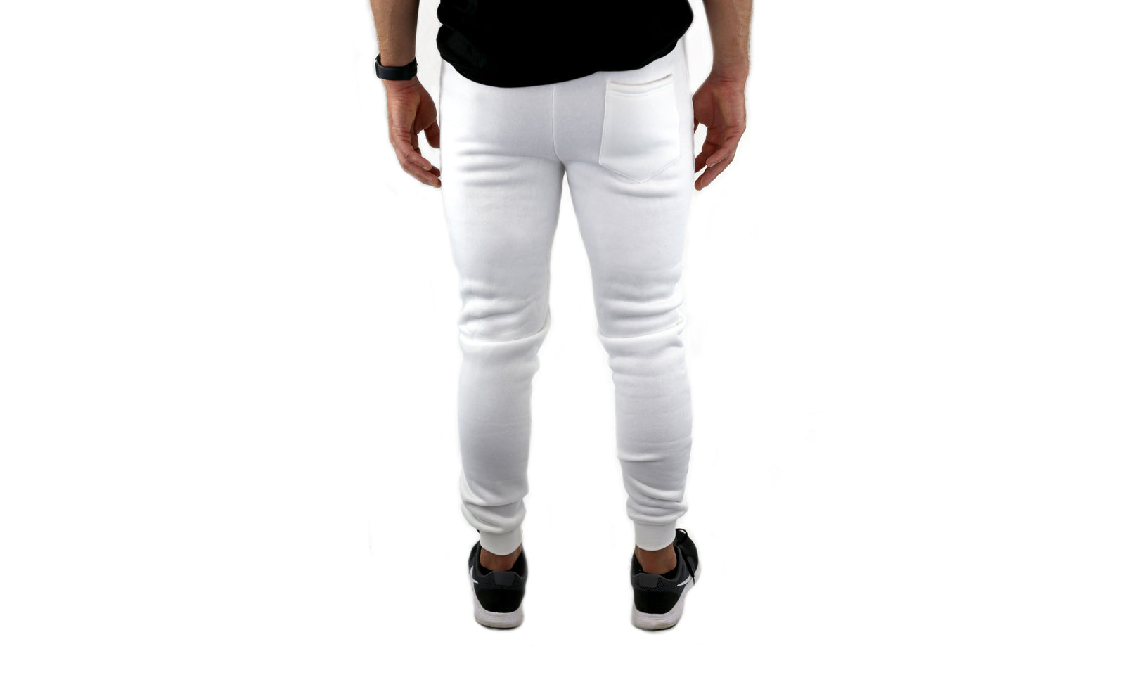 Mens Skinny Track Pants Joggers Trousers Gym Casual Sweat Cuffed Slim Trackies Fleece - White - XXL