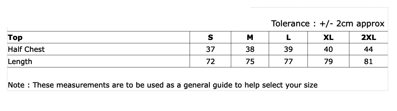 | Chest (armpit - armpit) | 33cm | 35cm | 37cm | 39cm | 41cm | 43cm |
