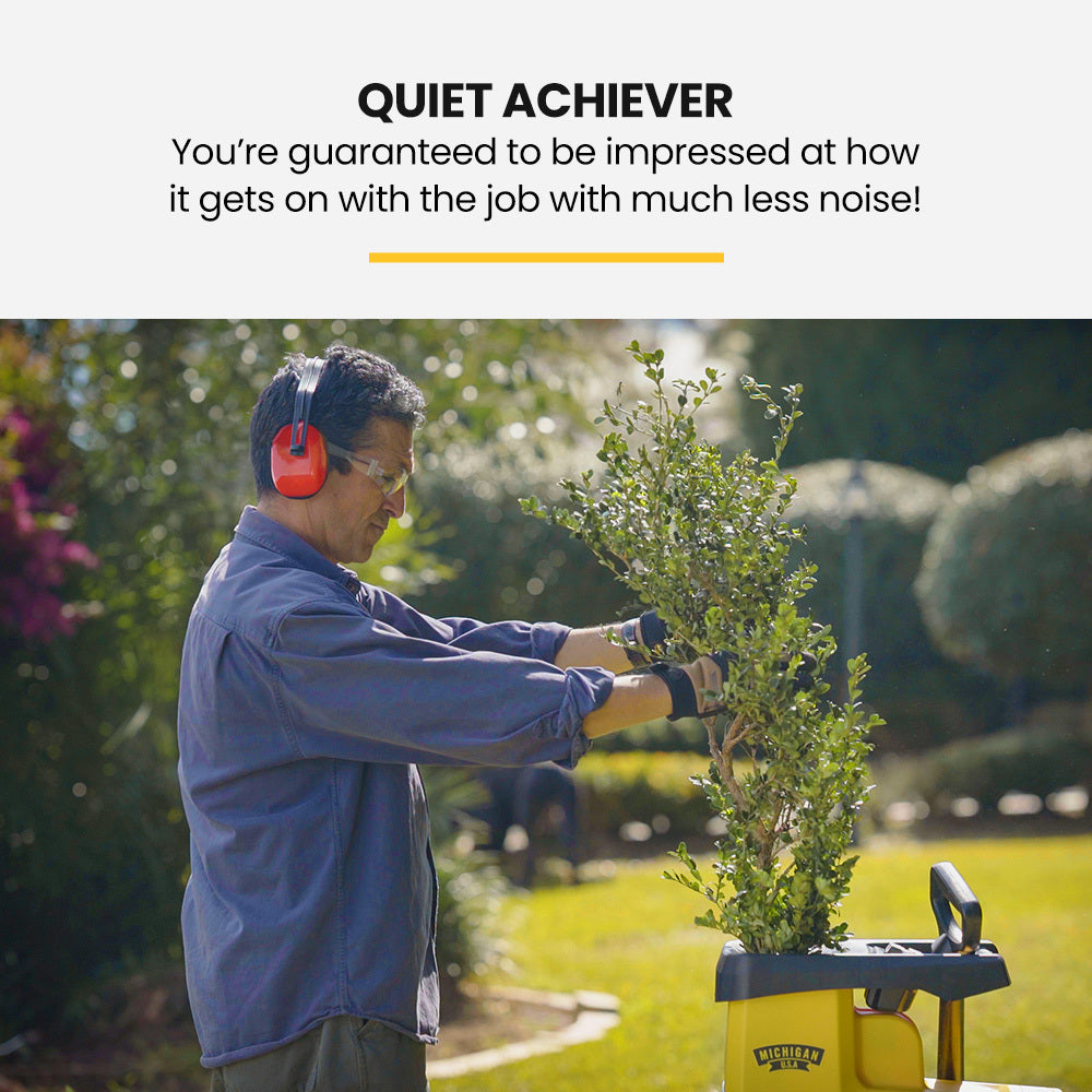 The Michigan electric crushing shredder comes with a flat push stick for safely moving along anything that needs it and has a reverse button to clear things up in the rare event of a jam. The massive translucent 50L container infrequently requires emptying and has an inbuilt safety motor cut-off when it is detached. You'll love being able to fit up to 10 times more garden waste into your green vegetation bin! Maintaining your yard will be a pleasure with this Michigan electric mulcher.