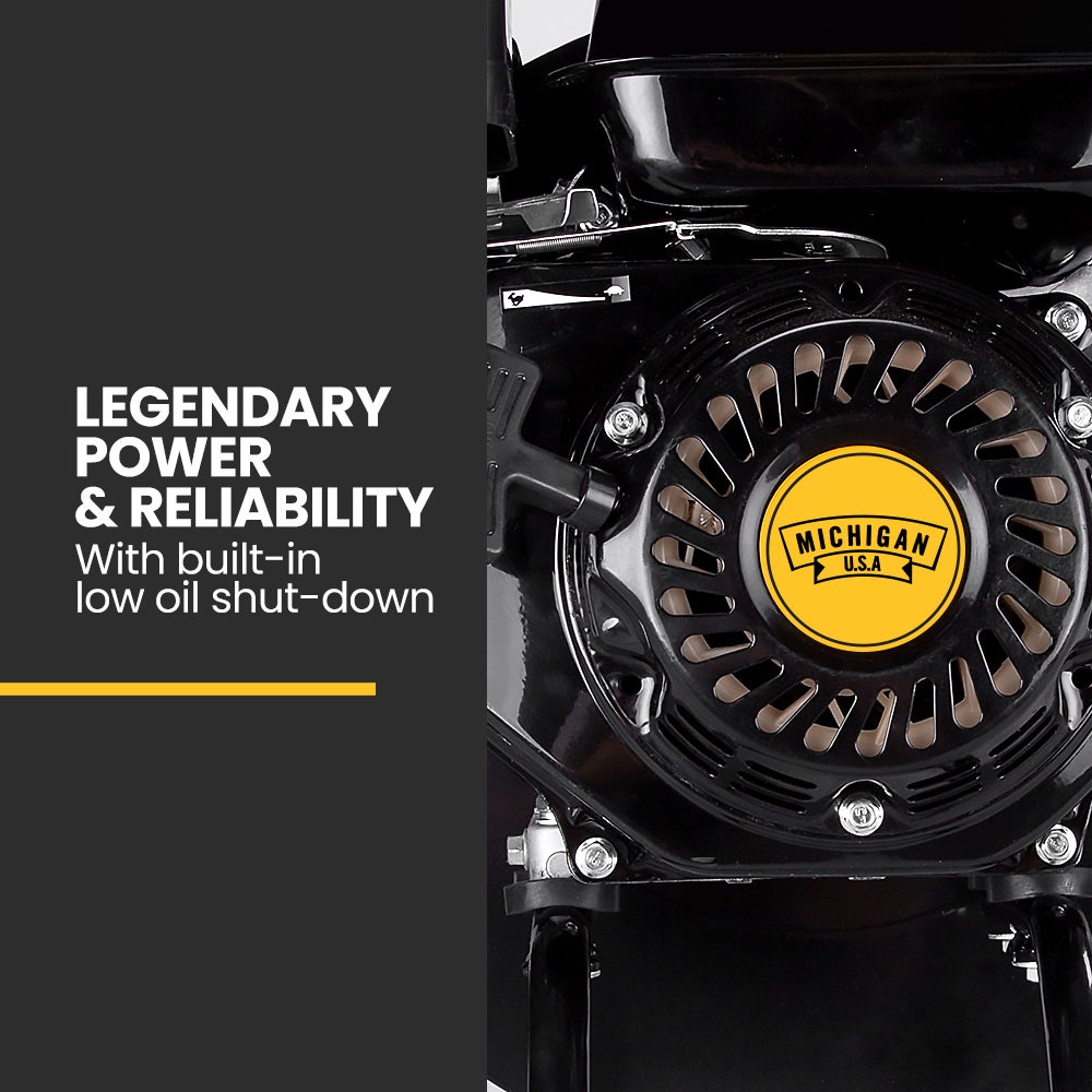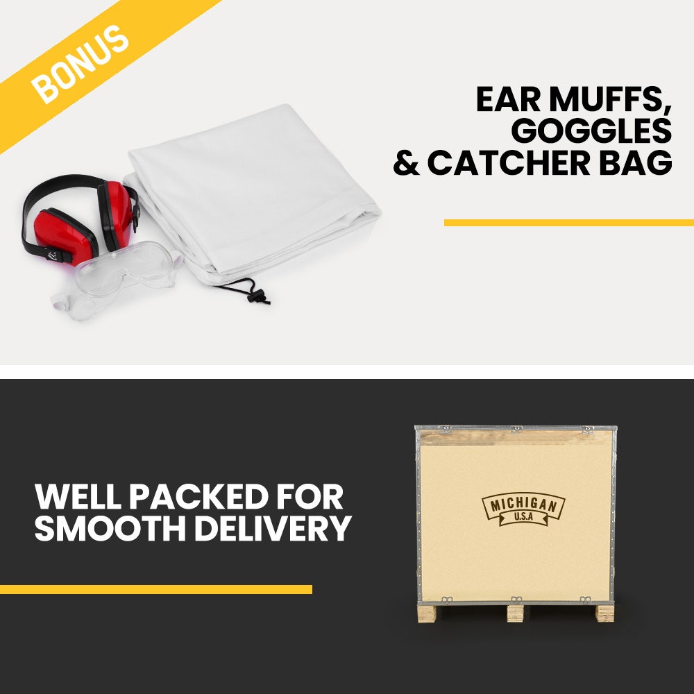 The Michigan Raptor 950 2-in-1 Portable Wood Chipper/Shredder features an innovative self-feeding upright design and is ideal for large property owners, keen gardeners or commercial landscapers. The chipper and flail blade system efficiently shreds down branches and other organic debris into a fine reduced mulch that's perfect for composting.