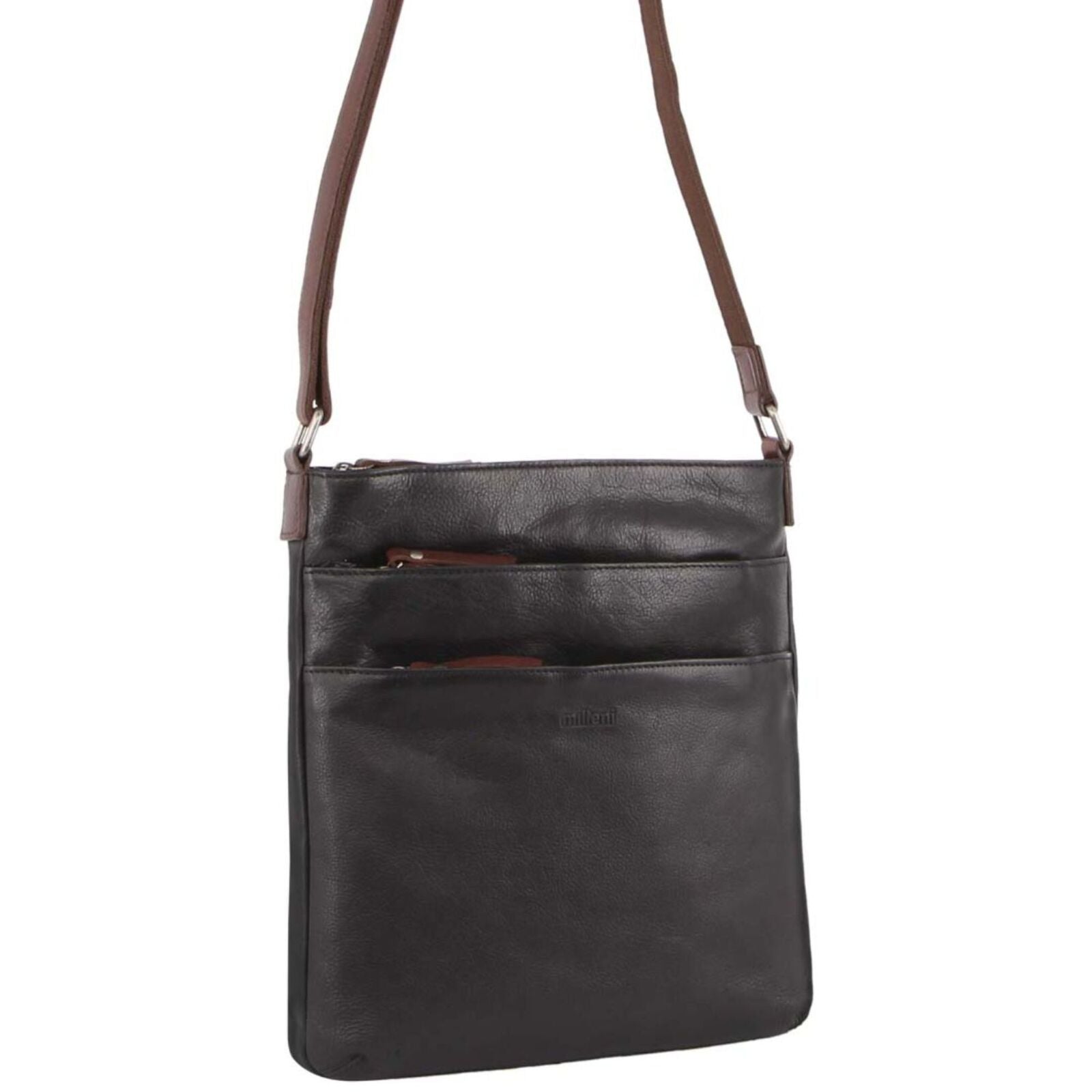 Milleni Womens Italian Leather Bag Soft Nappa Leather Cross-Body Travel - Black/Chestnut