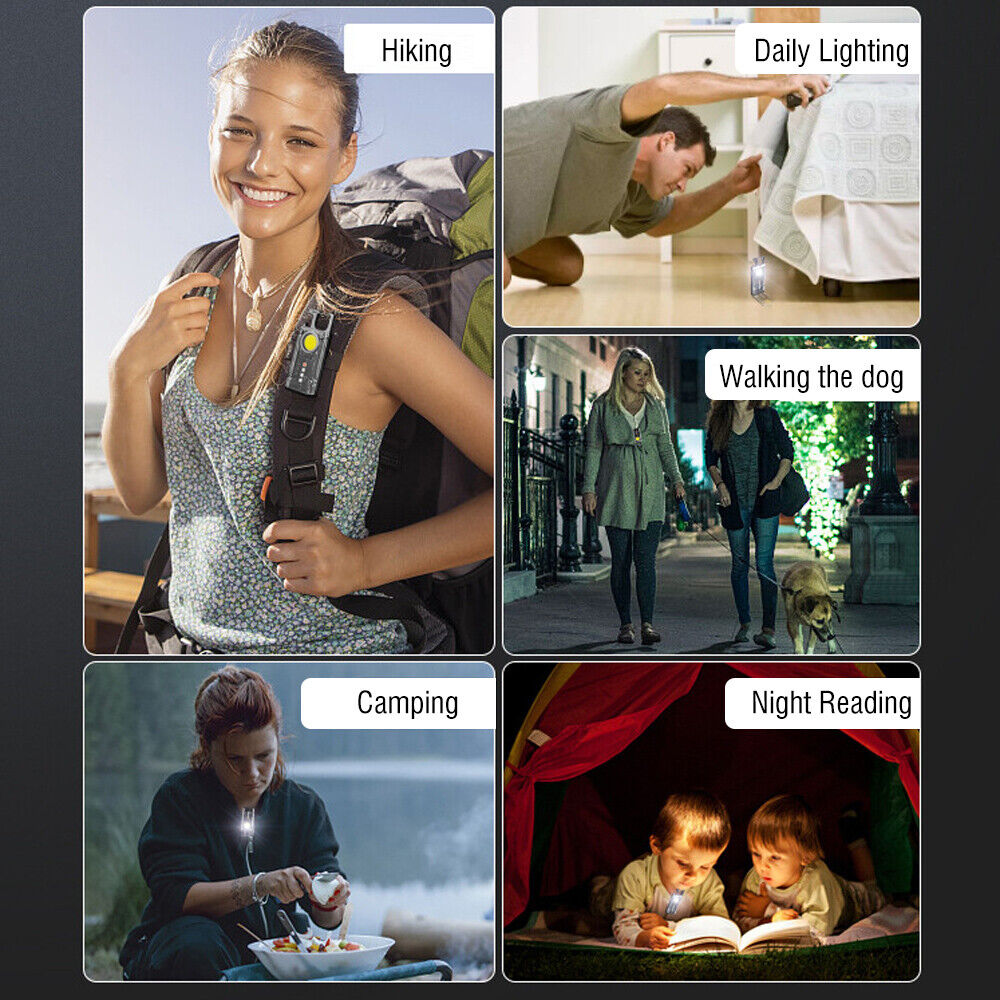 Mini Flashlight Keychain USB Rechargeable Cob Waterproof Portable Led Work Light