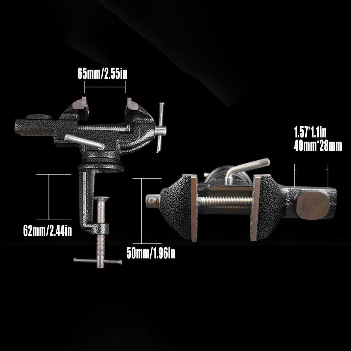 Introducing the Universal Mini Table Vise, an essential tool for any home workshop, designed for jewelers, hobbyists, and DIY enthusiasts. Made from durable iron, this black versatile clamp offers a secure grip and stability for various tasks. Its 360-degree rotating base provides flexibility and ease of use, making it an indispensable tool for detailed and intricate work.