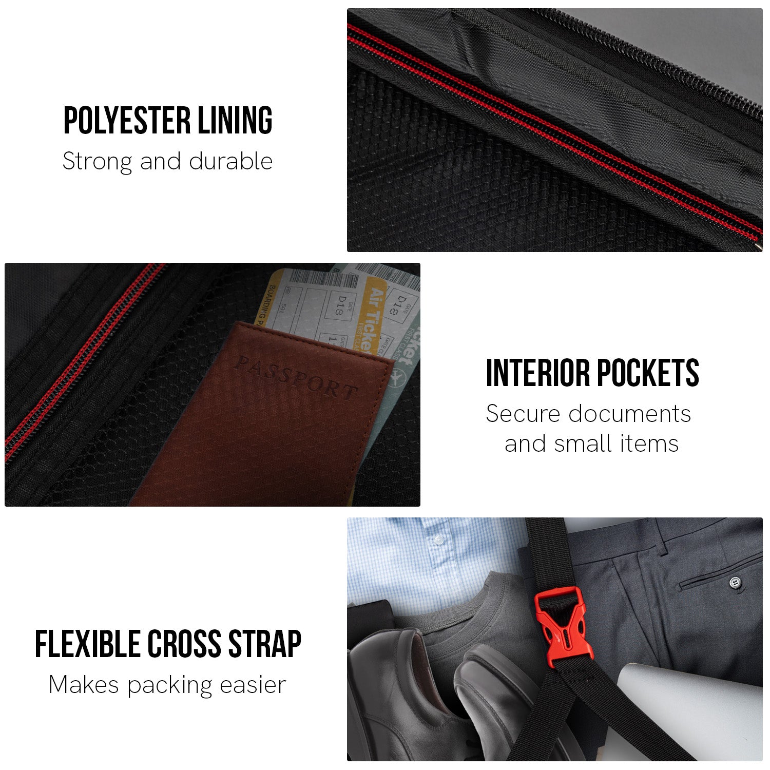 - Flexible cross strap to keep items secure