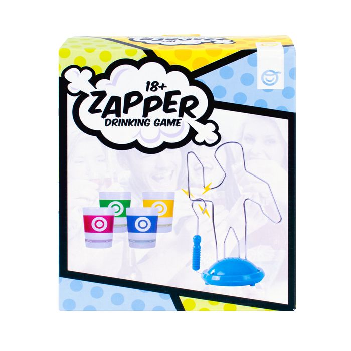 Try and move the whole way around the figure without setting off the "zap". Once "zapped" you need to skol a shot! Requires 2 x AAA batteries (not included). Comes with 4 x shot glasses.