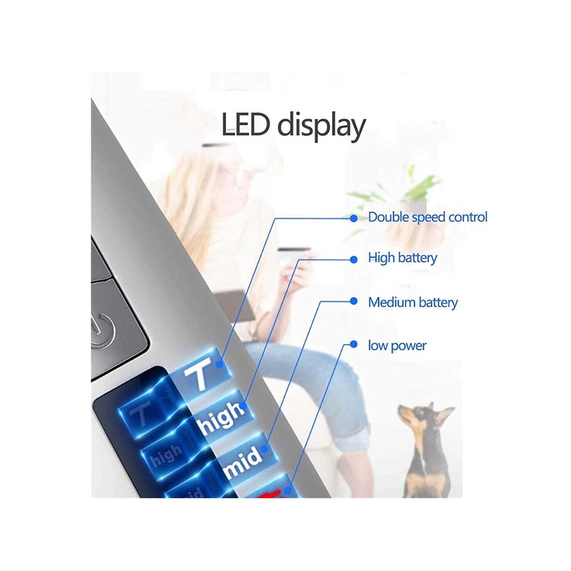 Powered by a long-life and rechargeable Li-ion battery, the nail grinder will work for up to 8 hours with full charge. The LED screen will display the speed and low battery level to facilitate safe and perfect makeover for pets.
