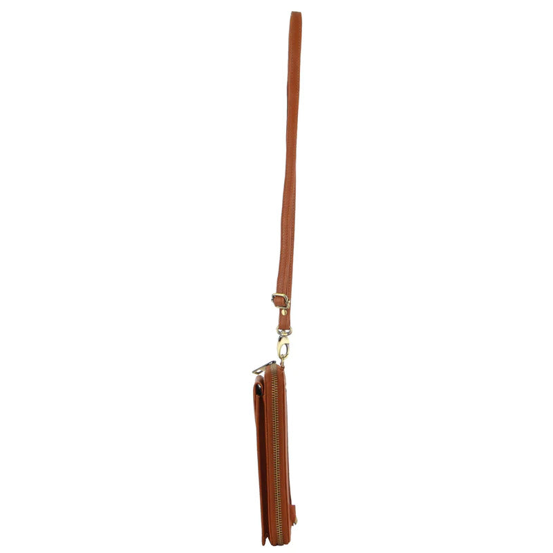 Pierre Cardin Ladies Leather Cross Body Bag/Wallet Bag/Clutch Wallet - Cognac