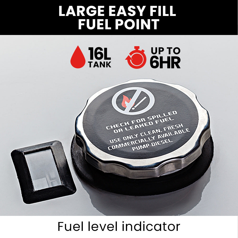 With 8400W peak output, rugged build quality, and a large 16L fuel tank, its ideal for industrial sites, farms, and emergency use. The 460cc engine and copper-wound alternator deliver consistent power, while the RCD safety switch, IP66-rated outlets, and digital AVR ensure safe, stable performance. Easy electric start, quiet operation, and dual swing doors make it a practical choice wherever serious power is needed.
