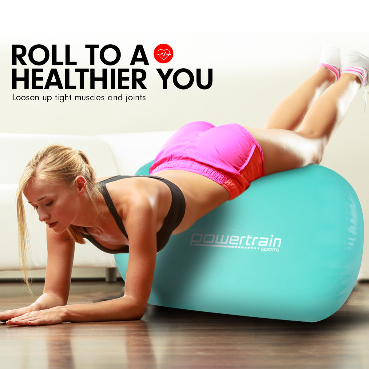 Powertrain Sports Inflatable Gymnastics Air Barrel Exercise Roller 120 x 75cm - Green