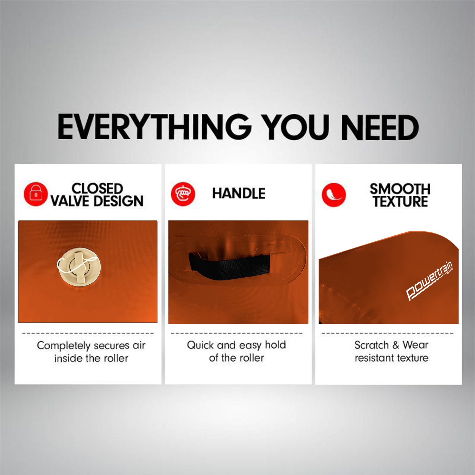 Powertrain Sports Inflatable Gymnastics Air Barrel Exercise Roller 120 x 75cm - Orange
