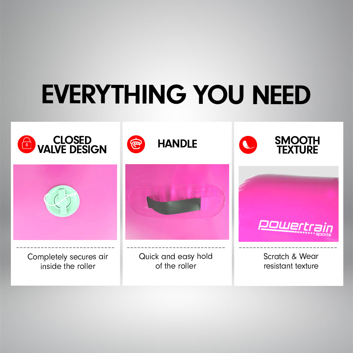 Powertrain Sports Inflatable Gymnastics Air Barrel Exercise Roller 120 x 75cm - Pink