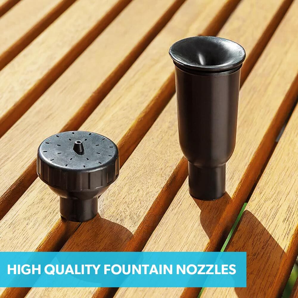 Protege are leaders in pump technology and the advanced 5W/10W/20W DC brushless design ensures efficient and reliable operation. The shaft height can be adjusted to best suit the depth of your pond. Two premium spray pattern nozzles are included and 60cm/ 1.5m/1.7m in delivery height can be achieved in full sunlight.