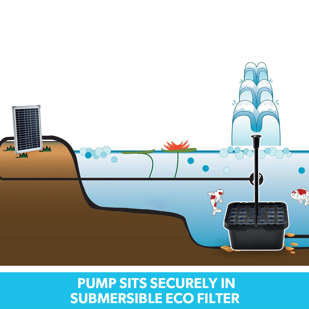 PROTEGE 20W Solar Fountain Pump Garden Water Pool Pond Kit with Eco Filter Box