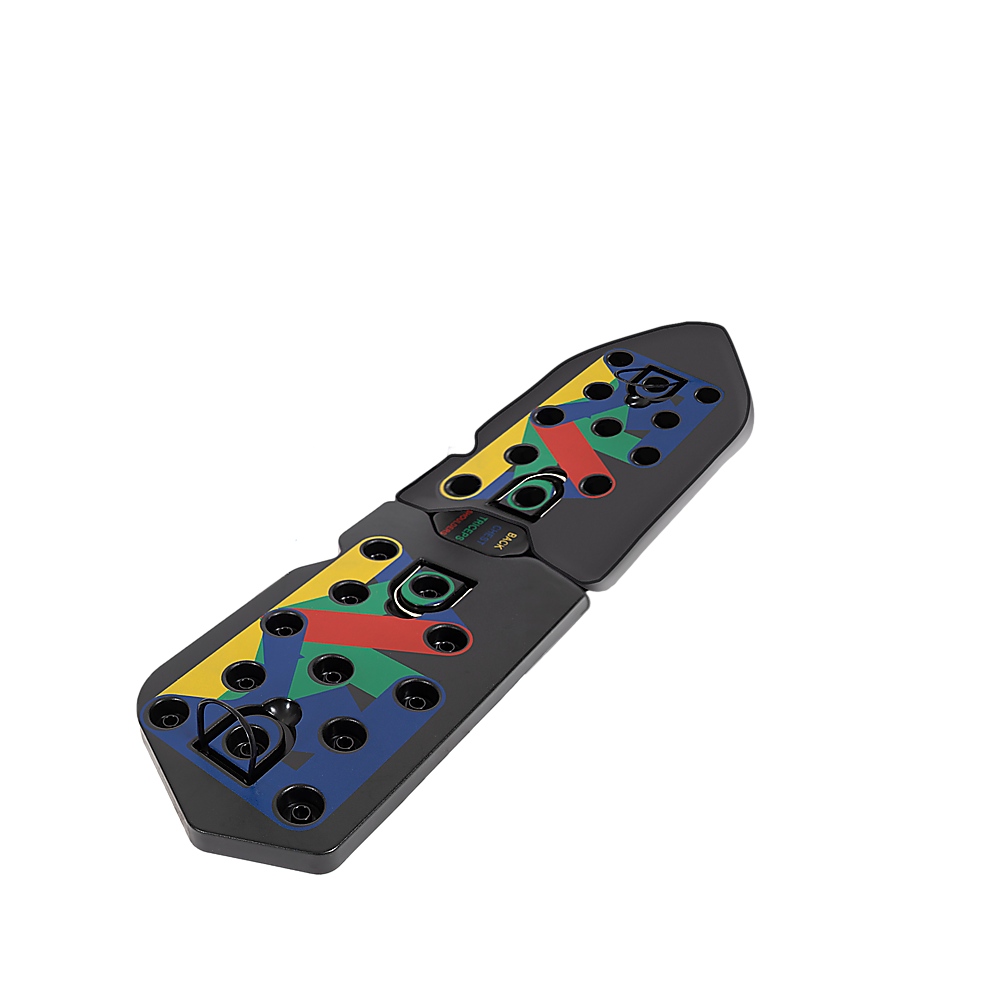Experience the advance and enhanced 13-in-1 push up bars with resistance bands. Designed for sculpting and maximizing chest, buttocks, shoulders, back, and triceps. Each colour targets specific muscles: blue for chest, red for shoulders, yellow for the back, and green for triceps.
