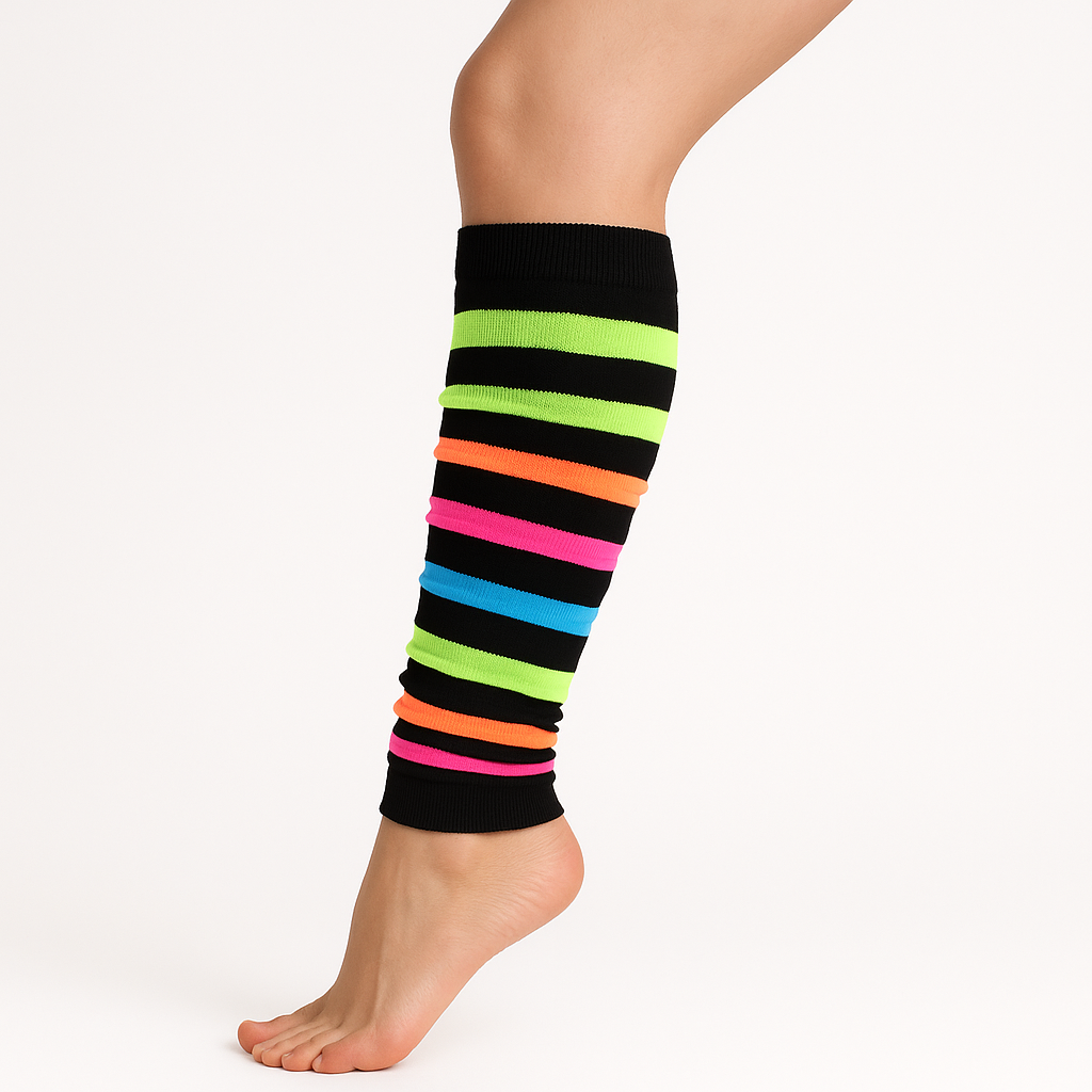 RAINBOW LEG WARMERS Party Costume Fine Stretch Ladies Girls Fancy Dress - Rainbow with Black Stripe