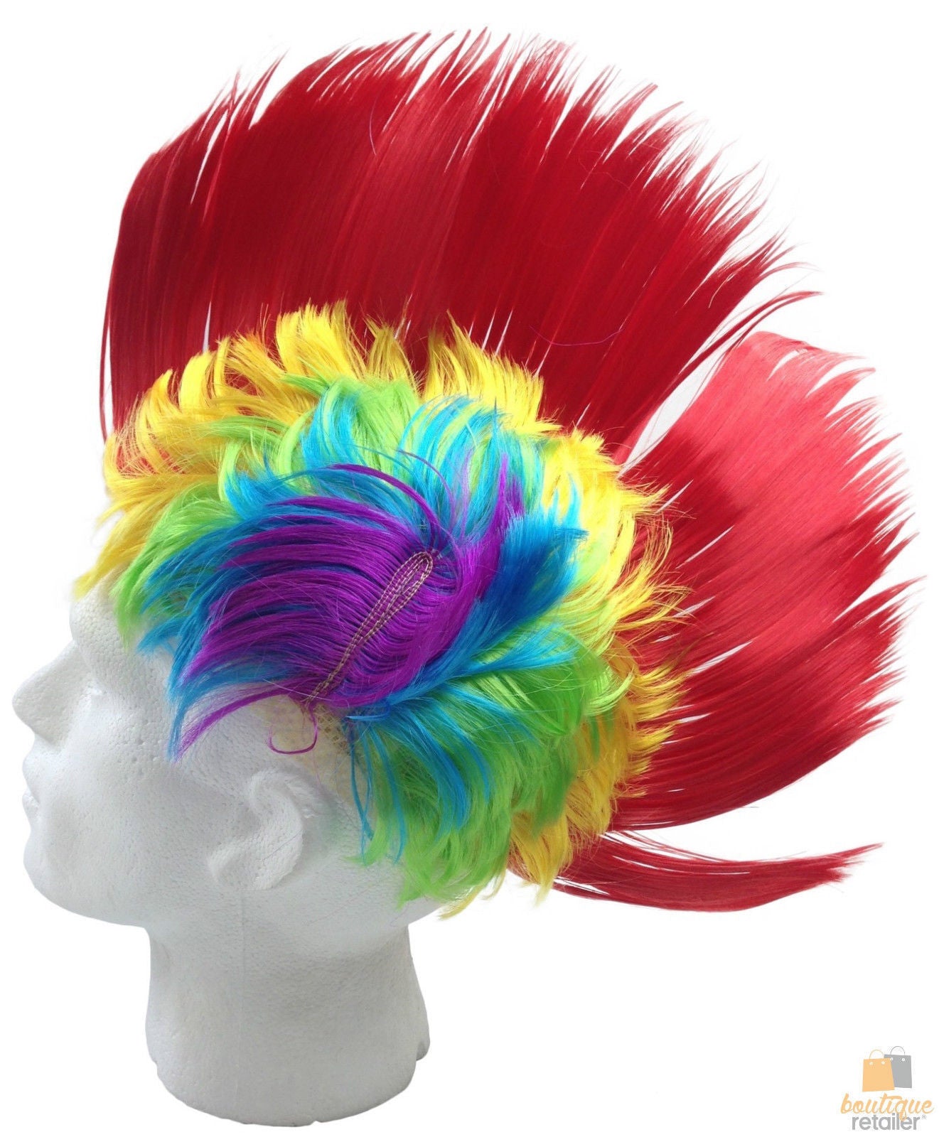 Rainbow MOHAWK WIG 70s 80s Rock Punk Hair Costume Mohican Rooster Wig Fancy