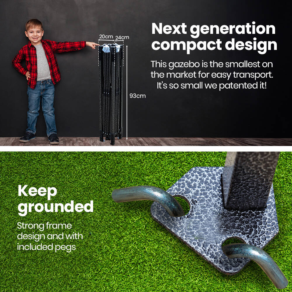 The Red Track 3.6 x 2.2m Gazebo stands out with the smallest folded size on the market閳ユ攱ust 93cm long! This ultra-compact 12kg design makes it incredibly easy for one person to carry, transport, and store, offering unmatched convenience compared to bulkier alternatives. Whether you're short on space or always on the move, this gazebo閳ユ獨 design ensures portability without compromise.