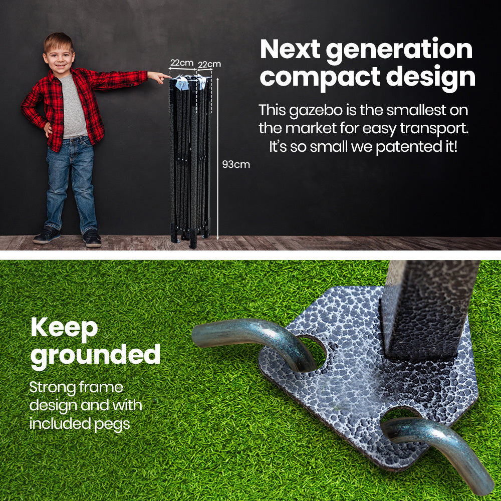 The Red Track 3x3m Gazebo (with 3 walls included) stands out with the smallest folded size on the market閳ユ攱ust 93cm long! This ultra-compact 13kg design makes it incredibly easy for one person to carry, transport, and store, offering unmatched convenience compared to bulkier alternatives. Whether you're short on space or always on the move, this gazebo閳ユ獨 design ensures portability without compromise.